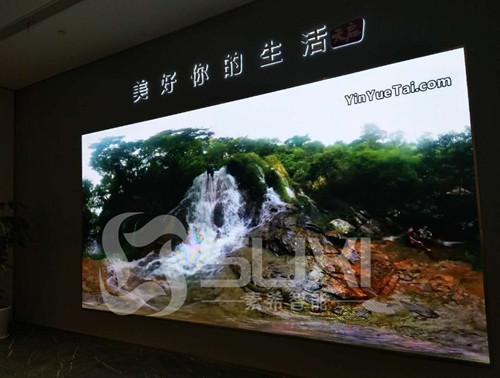 作為樓盤展廳大屏幕顯示屏,需要有舒適大氣的感覺(jué),所以金科上??偛看舜尾捎玫氖撬叵2.5室內(nèi)全彩顯示屏作為樓盤展評(píng)大屏幕,為企業(yè)做宣傳,讓客戶通過(guò)屏幕里播放的視頻來(lái)感受樓盤的優(yōu)勢(shì)。