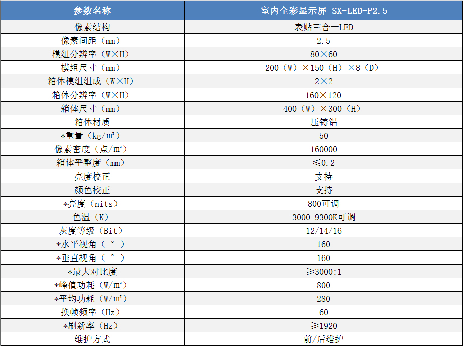 P2.5室內小間距高清全彩LED顯示屏技術參數: