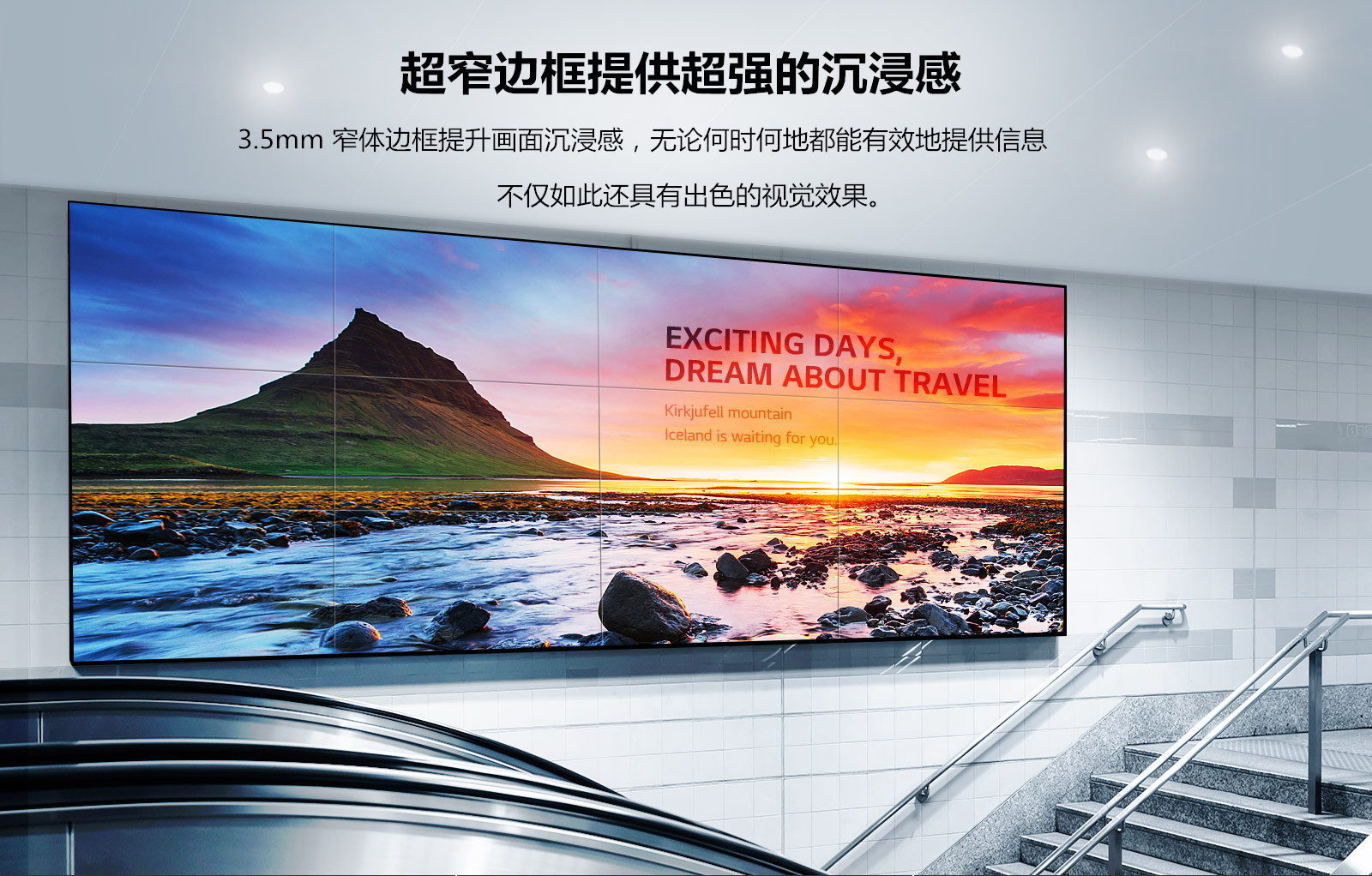46寸液晶拼接屏3.5mm窄邊拼縫,采用三星原裝面板,支持1×2;1×3;2×2;2×3……更多單元拼接。